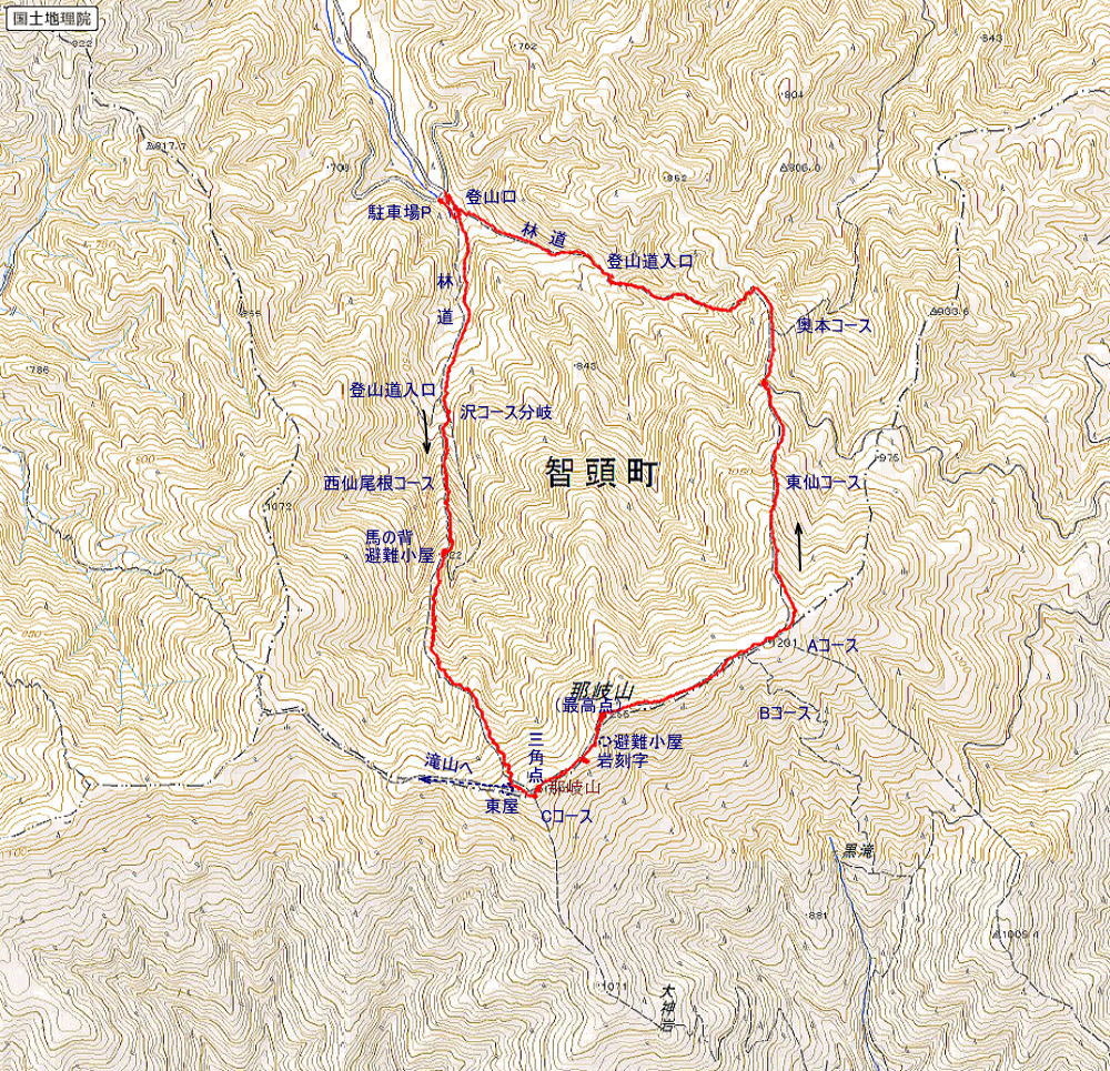 那岐山1255m 歩行時間(周回):3時間30分 歩行距離:7.6km