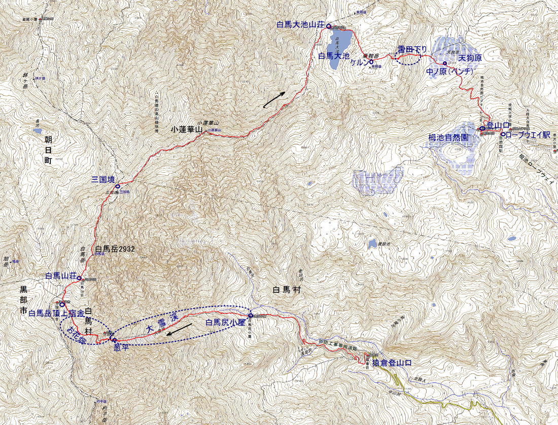 白馬岳2932m 歩行時間 登り:7時間 下り:6時間10分 歩行距離 登り:8.2km 下り:10.5km