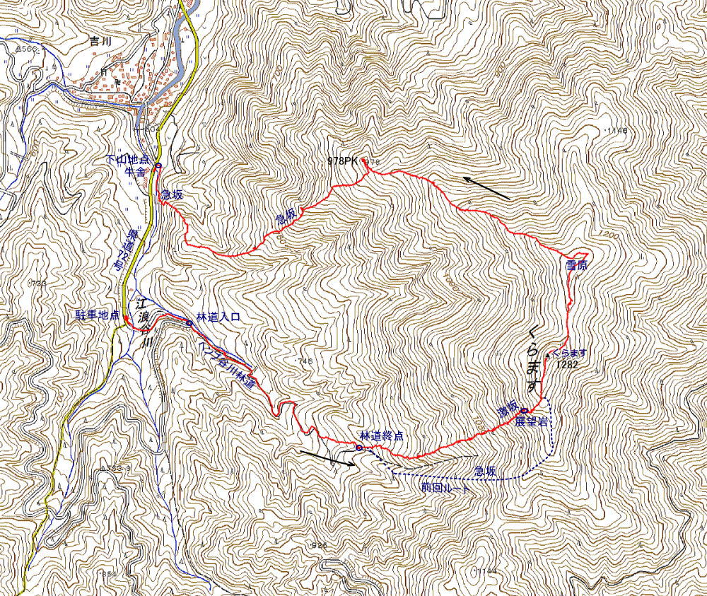 くらます1282m 歩行時間 登り:2時間40分 下り:1時間40分 歩行距離:6.5km