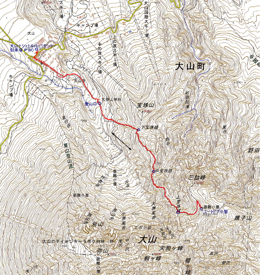 大山(三鈷峰)1516m 歩行距離:8,0q 歩行時間 登り:3時間30分 下り:2時間30分