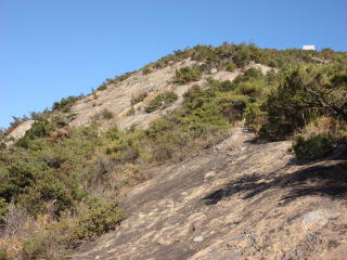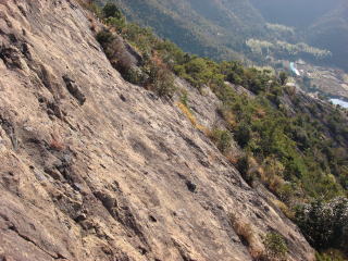 グリップの効く岩なので滑ることはないが見下ろすとかなり怖い。