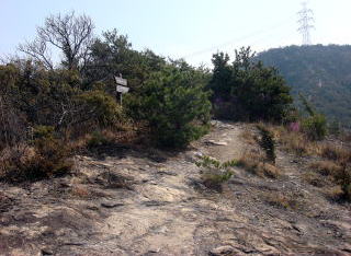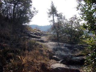 階段を上るとすぐに尾根で |