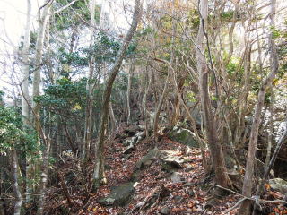 | 休憩後山頂を目指し、30分ほど樹林の道を登っていく。 | |