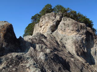 | 三角点を過ぎるとすぐにゴリラ岩。岩を左から巻きながら下りていく。 | |