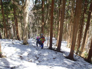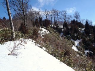 | 白馬山から周回することにして、登り始めるが相変わらず雪がない。 | |