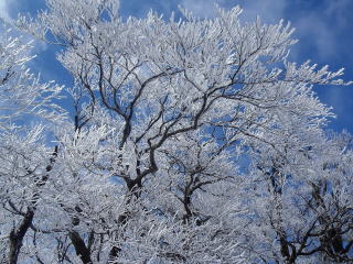 | 紺碧の空に真っ白な樹氷が輝いている。 | |