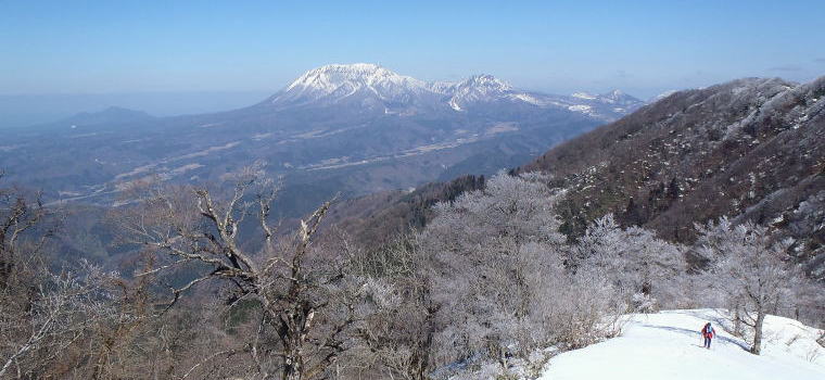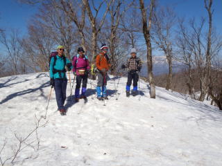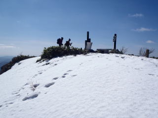 | 駐車場に着いたときはあまりの雪の少なさに驚いたが、尾根に上がるとまだまだ雪山だった。 穏やかな日差しと真っ青な空の下、春の雪山を堪能することができた。 |