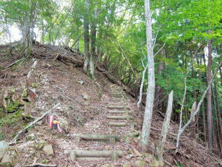| 山頂から20分ほど歩くと自然林の尾根になった。 | |