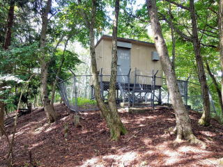 | 途中ほとんど眺望がなかったので、29号線を挟んで向かい側の音水渓谷から山容が分かるかもしれないと思い、 車で移動すると、渓谷入口の避難小屋前にちょうど日ノ原山が見えるポイントがあった。 なかなかドッシリとした姿だった。 |