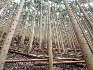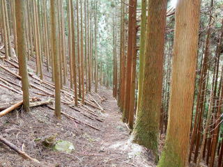 | またまた植樹林になるが、間伐伐採しているので結構明るい。 | |