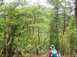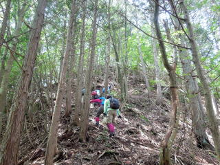 | 13時35分:登り始める。 14時:標高298mのニの山を通過。 | |