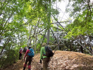 | 細い尾根を歩いて行くと、古墳跡が現れ、つづいてNHKの電波塔も通過。 | |