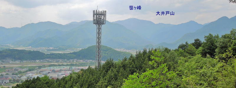 | 西側には、笹ヶ峰など播磨との境界の山並みが見える。 | |