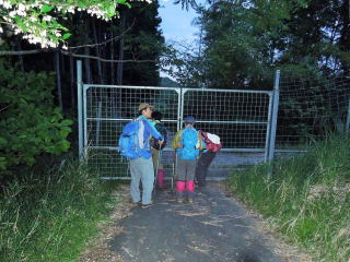 | 18時30分:殆ど日が暮れた時、瓶割峠に到着。そして、峠道を下って行き、18時、獣避け扉を抜ける。 | |