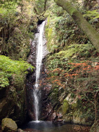 | 丹波市氷上町の五台山に登って来た。 「山麓に紅葉の名所と独鈷の滝」とガイド本にあるので、紅葉の季節に登ろうと思っていた山である。 10時頃岩滝寺手前の登山者用駐車場に到着。標高は約200m。 10時15分に出発。 岩滝寺前を通り登山道へ入り5分ほど紅葉の道を歩くと独鈷の滝。 風情のある散策路は人も少なくて静かだ。 |