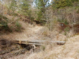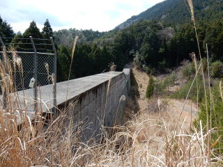 | 舗装された林道歩きは楽しくないので、途中から沢沿いに降りると、ちょうど堰堤前だった。 | |