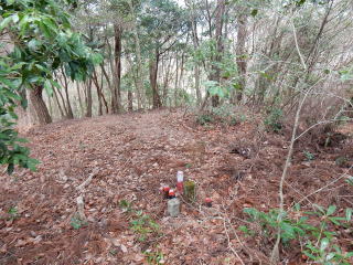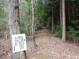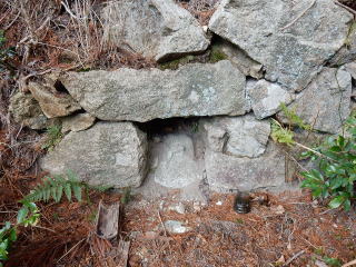 | 標識の右側には地蔵さんが祀られていた。ここで昼食休憩し、11時50分、林道を下山する。 | |