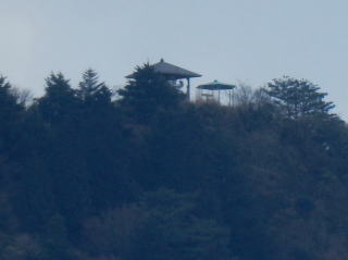 | 山頂から30分ほど歩いたところで、前方の木々の間に稜線が見えたので50倍でズームアップすると、 思った通り、形山の山頂だった。 |