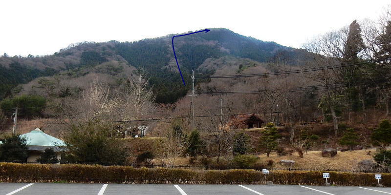 | yamayaさんと登る。 9時:標高約230mのリフレッシュパーク市川の駐車場から西に向かって歩いて行く。 |