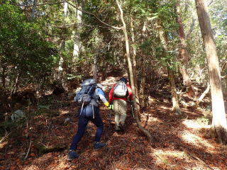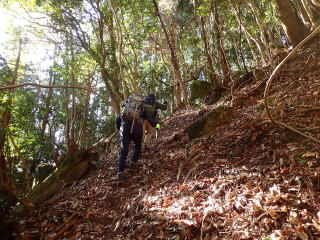 山頂直下の急登がこの山一番の傾斜で、横歩きしなくては滑り落ちそうになるところだった。