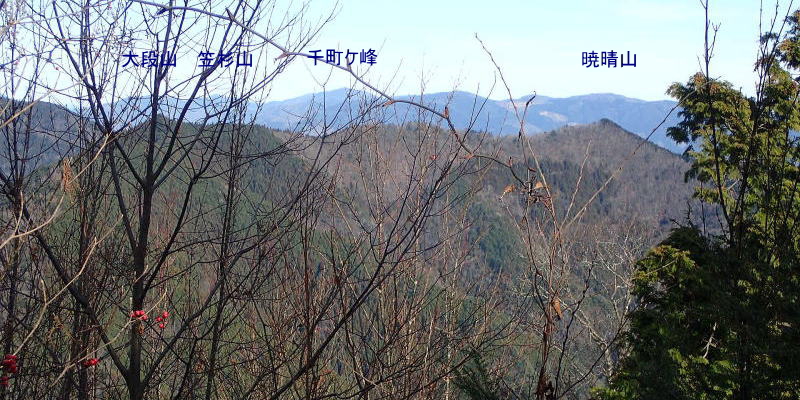 北東ピーク裏から北側に黒尾山や暁晴山が見渡せた。