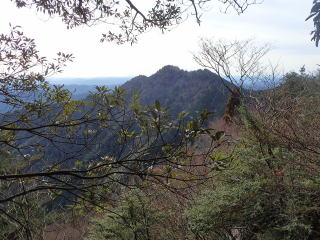 808m峰への登りになり、振り返ると樹々の間から山頂が見えていた。