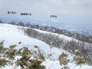 | 北西方向を見ると、皆ヶ山の後に大山がぼんやりとながら姿を現してくれた。 | |