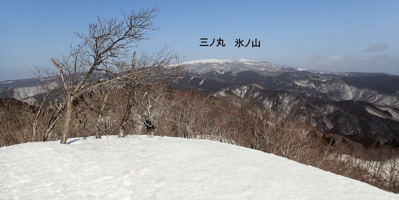 | 振り返ると、雪を纏った氷ノ山奇麗に見渡せた。 | |