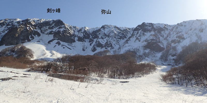 | 15時:元谷に降り立つ。ここからの北壁はいつ見ても迫力がある。 | |