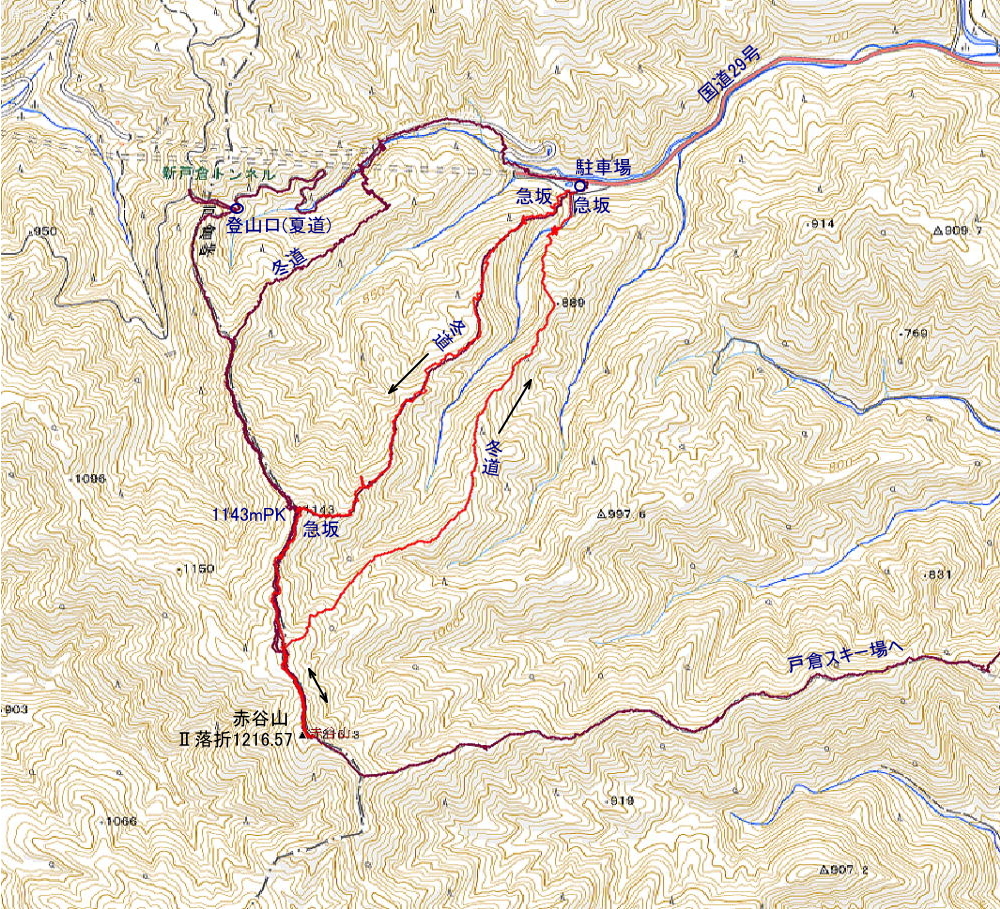 赤谷山1216m 歩行時間 登り:2時間40分 下り:2時間20分 歩行距離:5.4q