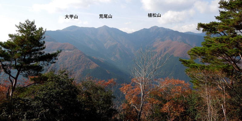 | 南西側には大甲山1035mから荒尾山1108mに続く稜線が見える。 | |
