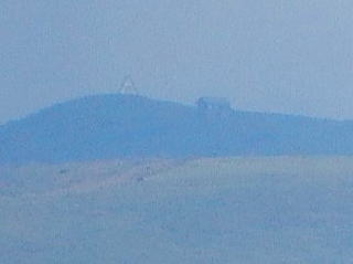 | 転換点辺りで氷ノ山の山塊が見渡せたのでクローズアップすると、 氷ノ山と三の丸の避難小屋が見えていた。 | |