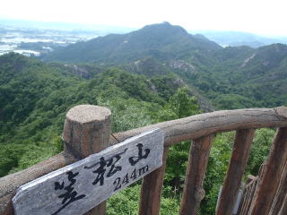 | 8時55分:笠松山山頂。 展望台から善防山を望む。 | |||