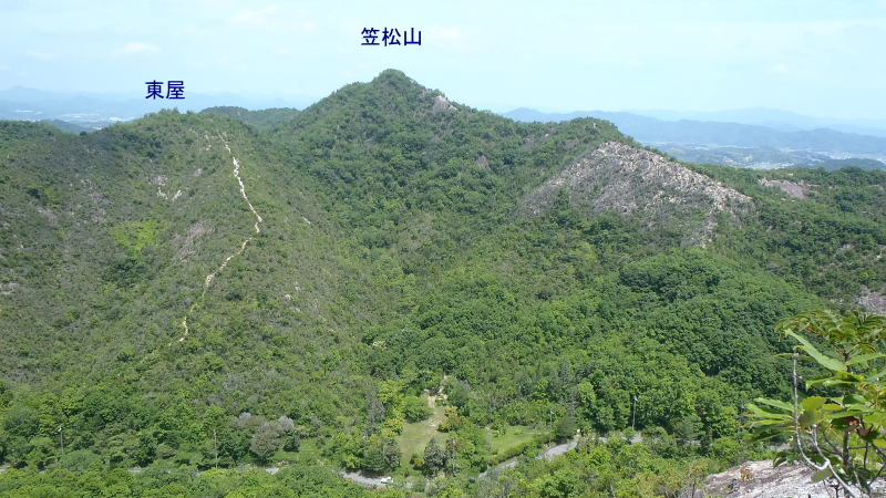 | 右手には笠松山が対峙。歩いてきた道が良く見える。 | |||