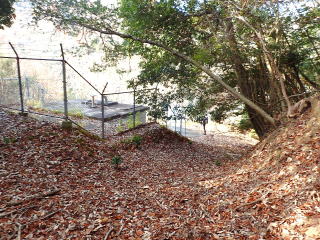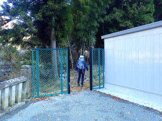 | ヤマレコの「みんなの足跡」は神社の右手から登っているが、rika-goさんのレコを参考にさせてもらって 左手から山に入り、すぐ前の獣除け扉をフェンスの扉を開けて登っていく。 |