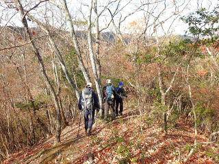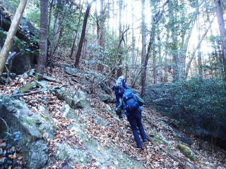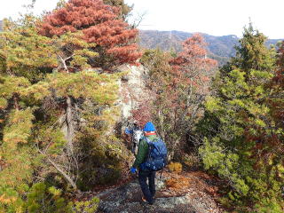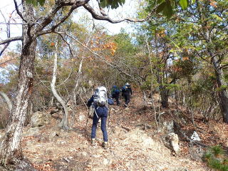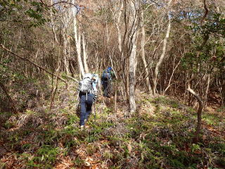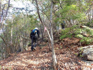 | 尾根に上がるまではルートから外れているので、歩けるところを探して登っていくと尾根に合流した。 | |