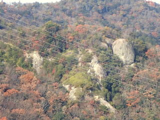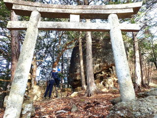| 10時10分:祇園山。ここには磐座神社の奥の院があり、鳥居の向こうには巨岩が鎮座していた。 | |