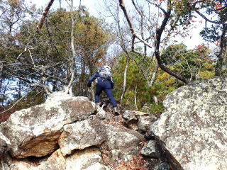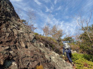 | 高巖山山頂は眺望がないので、前方に聳える北峰(北岩)に向かう。 | |