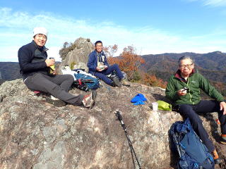 | 北峰への途中に見晴らしのいい岩場があったのでここでランチタイム。 | |