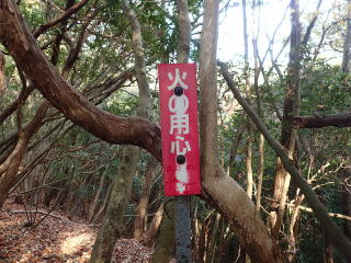 | あとは下るだけで、少し下ると「火の用心」の標識が現れたので、ここから下山。 | |