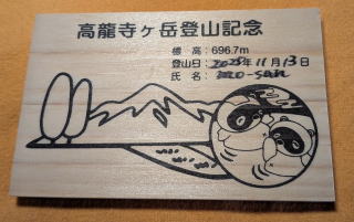 コースタイム(往復) 登り 駐車場‐(10分)‐登山口‐(110分)‐山頂   合計 2時間