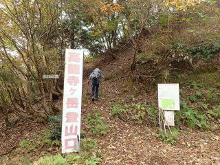 この登山道標識のところからも登れるが、もう少し林道を歩くと登山口標識が出てくる。
