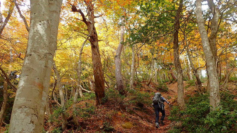 この季節の登山道は、同じ道の往復でも華やかで飽きることなく歩ける。