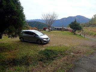 播但道和田山インターから、国道9号‐府道56号‐国道482号を約48q走って産霊神社前の登山者用駐車場へ。