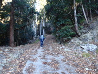 9時30分:駐車場を出発し、林道を少し歩く。 標高は約300m地点。
