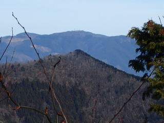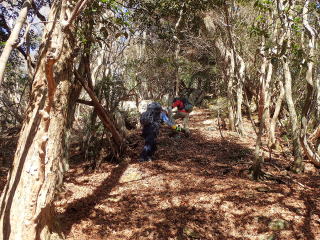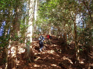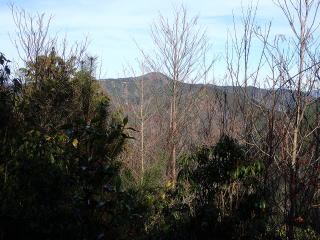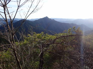 808m峰への登りになり、振り返ると樹々の間から山頂が見えていた。