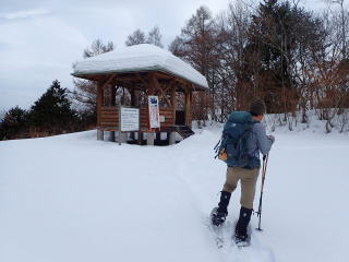 | しばらく林道を歩いていくと、9時45分、東登山口手前にある東屋に到着。 | |