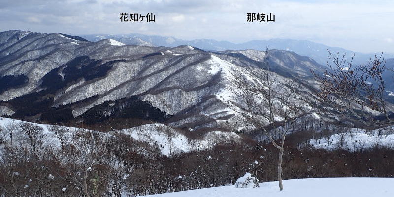 | 東登山口のある林道をショートカットして尾根歩きを続け、14時30分、尻セードで林道に降りる。 | |