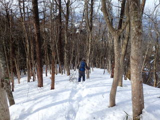 | 下山路の樹林帯は落葉樹林なので明るい。 | |