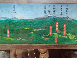 | 東屋の中から見える蒜山三山と大山の眺望と絵図。 | |